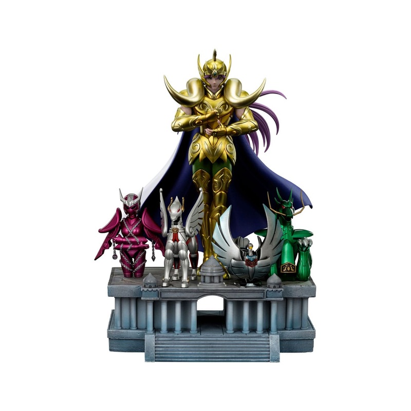 Accurate 3D sculpt: vibrant purple cape, horned helmet and textured Cloth of Gold. Diorama base integrating the busts Pegasus, Dragon, Cygnus, Andromeda, Phoenix for a complete display. Metallic paint and airbrush shading by Iron Studios. Essential piece to open your row of Gold Saints in a collection dedicated to Saint Seiya.Reference : 95790This reference is also named : IS95790 – IS9579 – 106655 – 16655 – 9579 Figurines Scale : 1:10